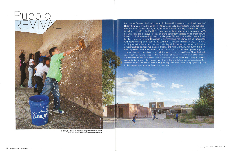 The Owe’neh Bupingeh Preservation Project continues to receive great press. This month, we’re featured by New Mexico Magazine as one of “three buildings we love.”