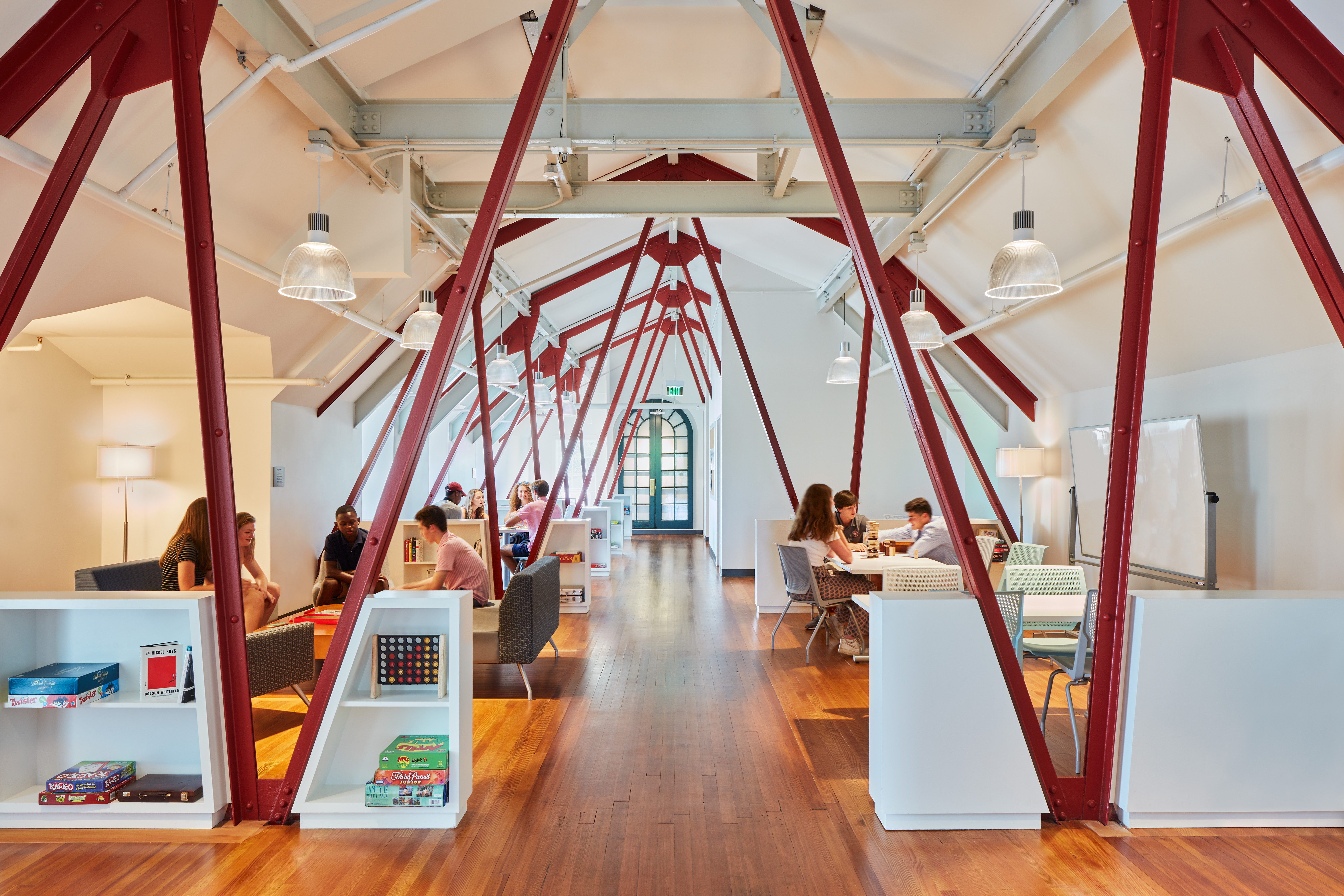 The Scanlan Campus Center, the winner of the Institutional Category of this year’s awards, consists of the extensive renovation of and a major new addition to the School’s existing 1913 Loomis Hall. While existing spaces, such as the former dining room and attic staff quarters, were renovated to accommodate new programming while respecting their historic context, the focal point of the project is the new 500-seat Dining Hall addition. The new Scanlan Campus Center houses the new Dining Hall, renovated Kitchen and Servery, new Bookstore, multipurpose study and recreation spaces, and a state-of-the-art Maker Space.