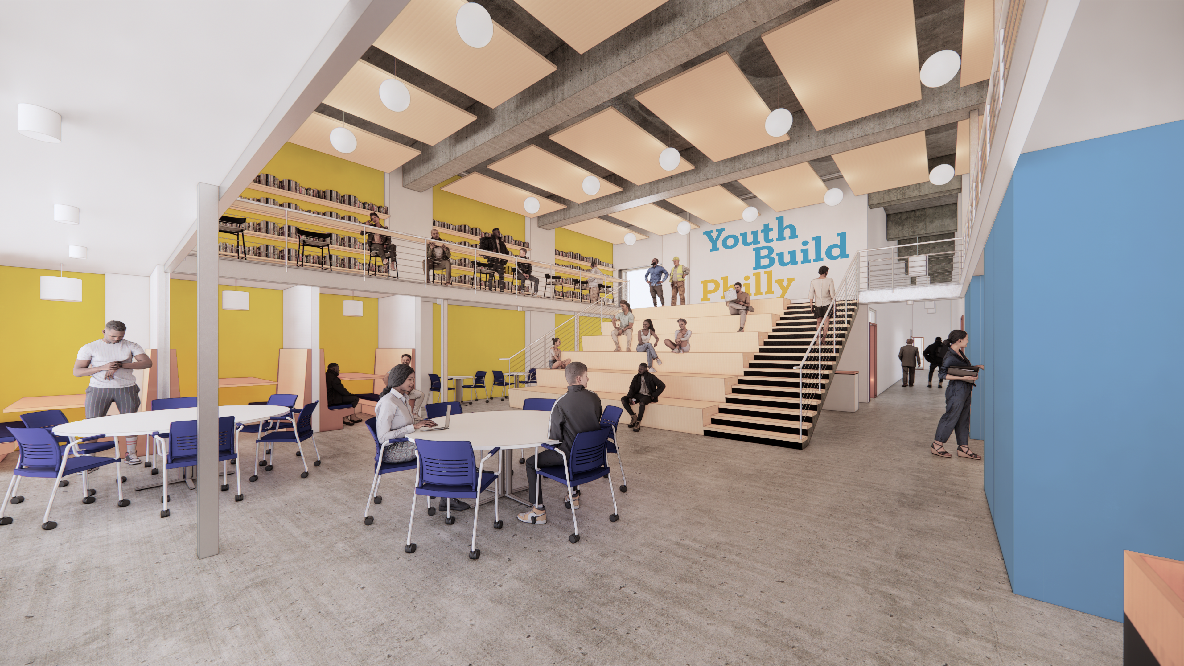 Design Rendering of Central Space at the new Youth Build Charter School