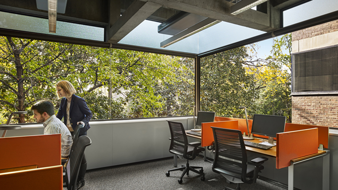 Sustainable Preservation and ReuseHigh-performance glazing and mechanical systems combined with newly programmed uses requiring fewer air changes have greatly reduced energy usage and given new life to the Richards Medical Research Laboratory, one of Louis Kahn’s icons of modern architecture and a National Historic Landmark.