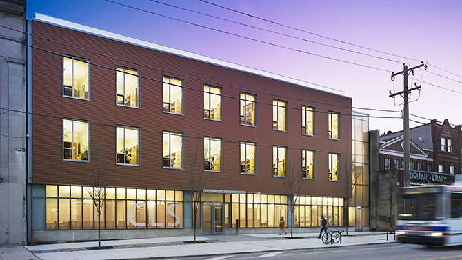 High Performance New BuildingsThe courtyard at the North Philadelphia Law Center provides all spaces with access to controlled daylighting and natural ventilation, minimizing the building’s reliance on artificial light and mechanical cooling.